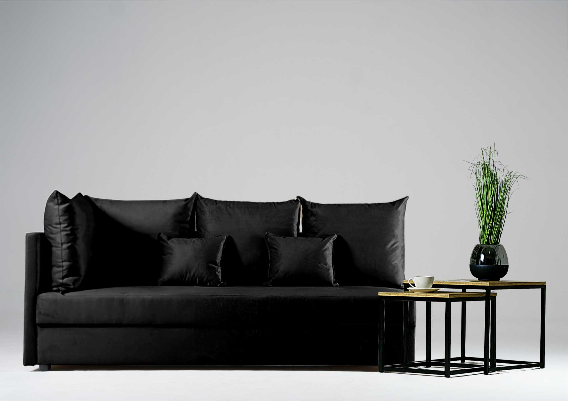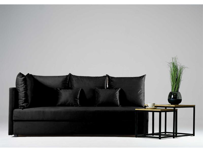 Dane techniczne: Sofa Rozkładana Trzyosobowa Lewa MOBO Czarna z Funkcją Spania do Salonu