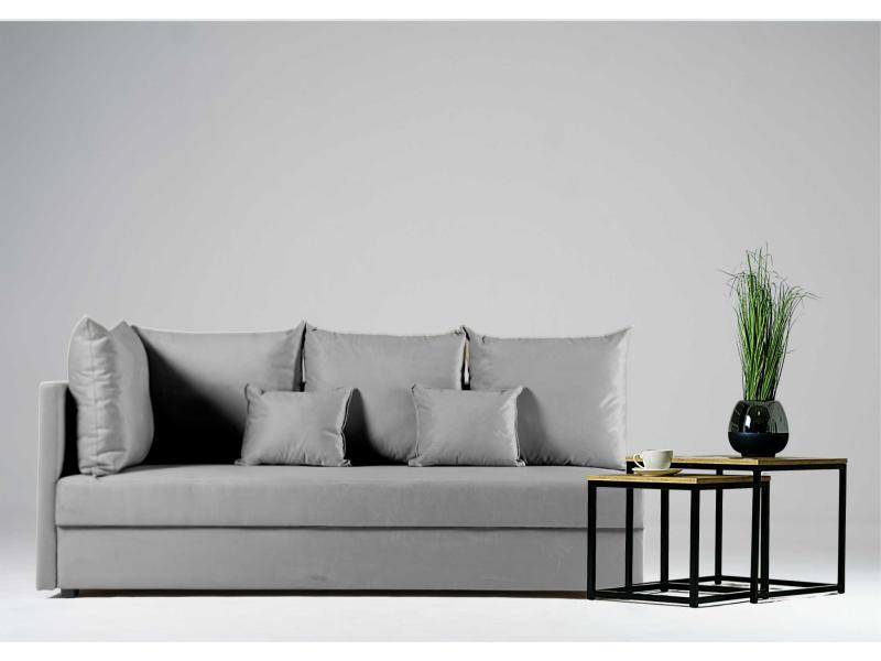 - Sofa z funkcją spania, który idealnie nada się zarówno do małego pokoju w bloku jak i w większych pomieszczeniach.