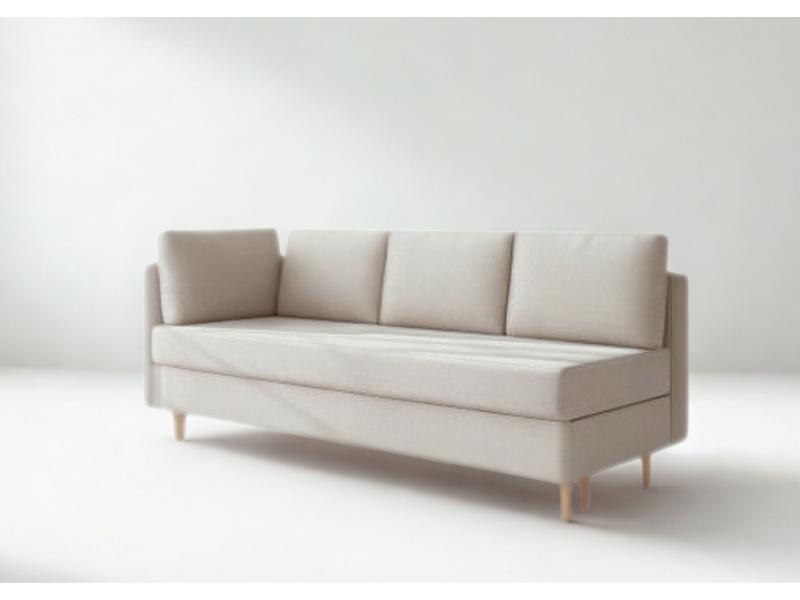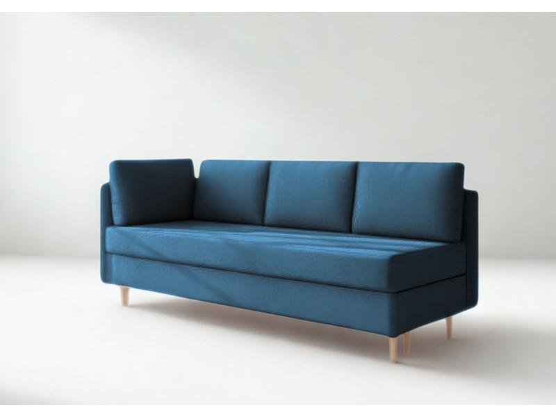 Lewa skandynawska sofa Prato wykonywana jest na drewnianych nogach w kolorze naturalnym. Możliwe jest wykonanie innego koloru nóg po kontakcie i ustaleniu z nami tej kwestii. Sofa posiada funkcję spania 190x140cm i duży pojemnik na pościel pod siedziskiem.
