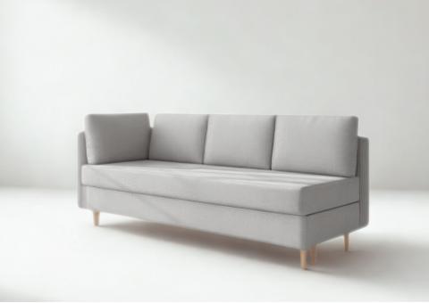 Lewa skandynawska sofa Prato wykonywana jest na drewnianych nogach w kolorze naturalnym. Możliwe jest wykonanie innego koloru nóg po kontakcie i ustaleniu z nami tej kwestii. Sofa posiada funkcję spania 190x140cm i duży pojemnik na pościel pod siedziskiem.