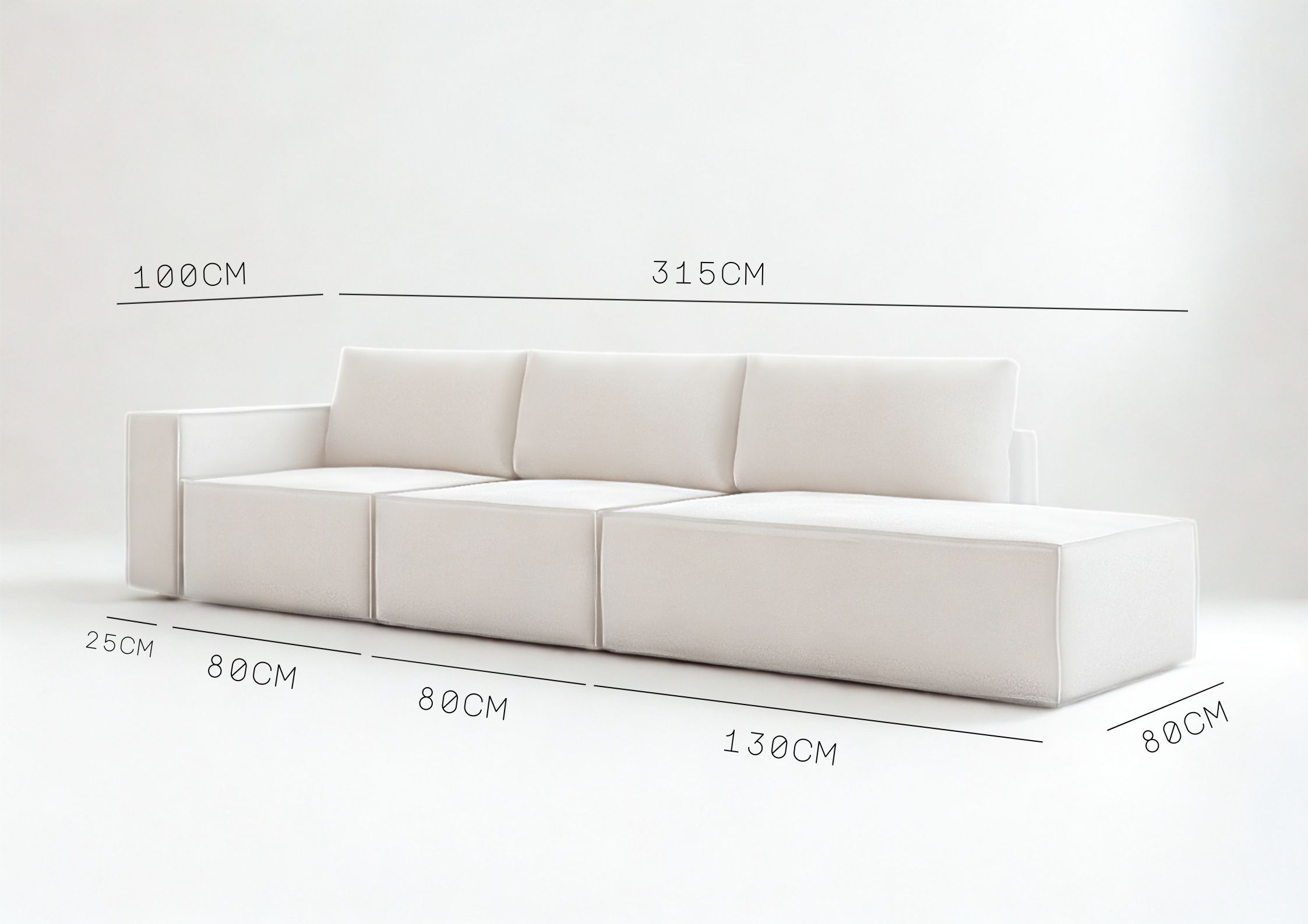 Modułowa sofa Goia to sofa, która zachwyca swoim kształtem. Idealnie nadaje się do większych wnętrz. Sofę modułową można łączyć i rozłączać tworząc z niej inne zestawy. Możesz stworzyć sofę z mniejszego i większego siedziska, oraz fotel. Dokupując u nas dodatkowe boki, poduszki zyskasz możliwość zmieniania sofy w inne meble, w ustawieniach jakie sobie wymarzysz. Sofa modułowa jest przeszyta pięknym szwem francuskim na krawędziach. W zestawie znajdziesz 3 duże poduszki oparciowe. Kup sofę modułową Goia i ciesz się niebanalnym wyglądem i wygodą.