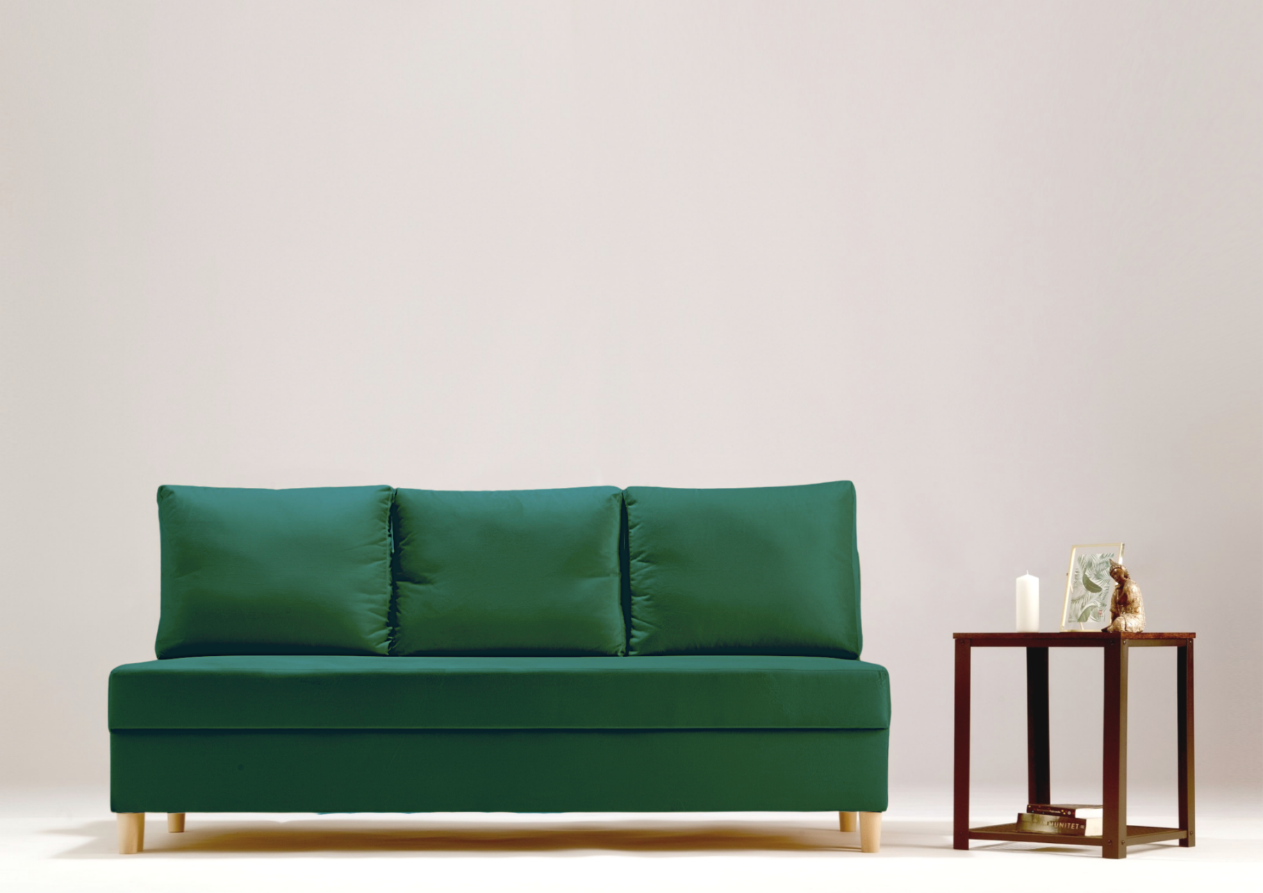 - Sofa z funkcją spania, który idealnie nada się zarówno do małego pokoju w bloku jak i w większych pomieszczeniach.