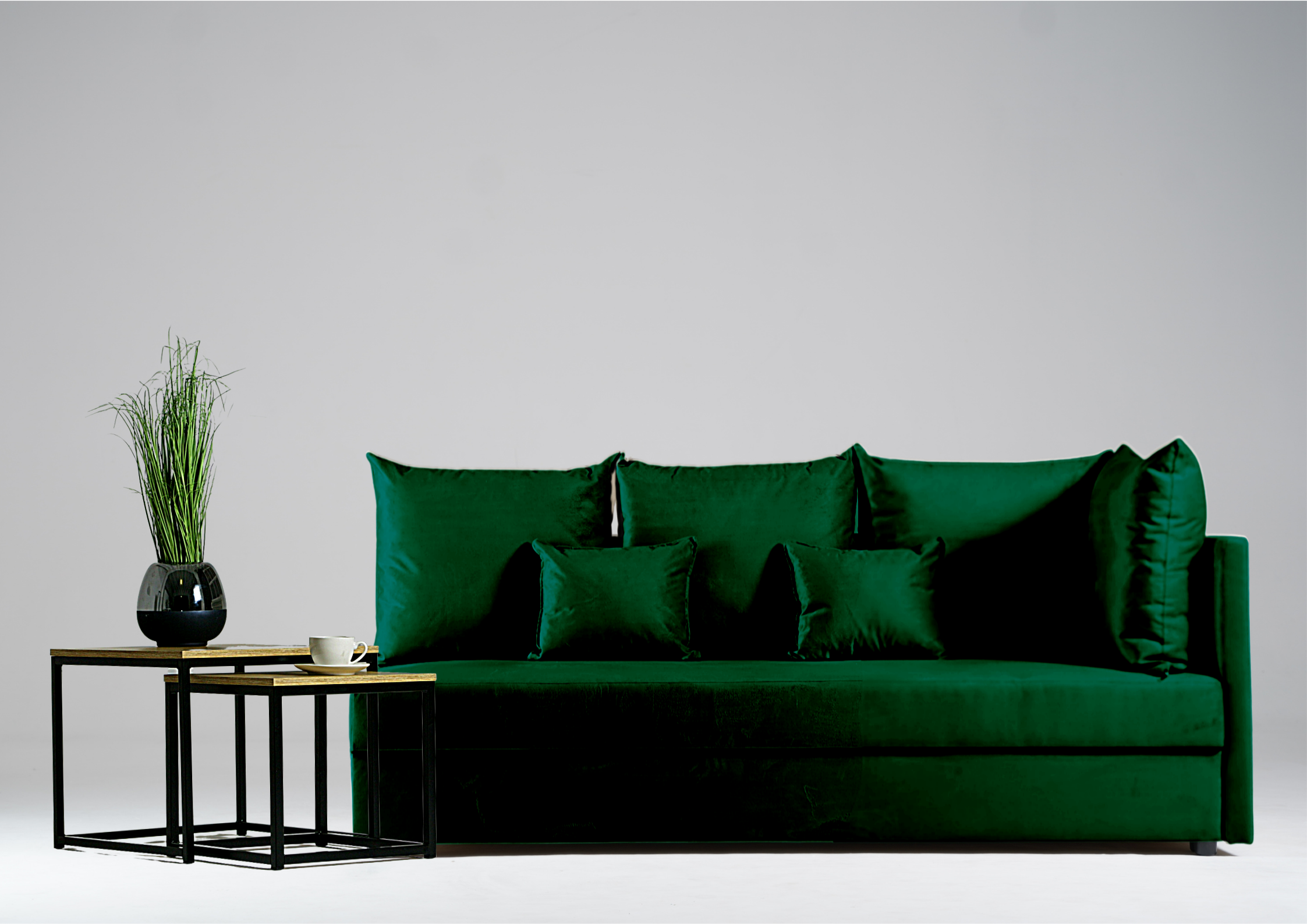 Dane techniczne: Sofa Rozkładana Trzyosobowa MOBO Prawa Zielona z Funkcją Spania do Salonu