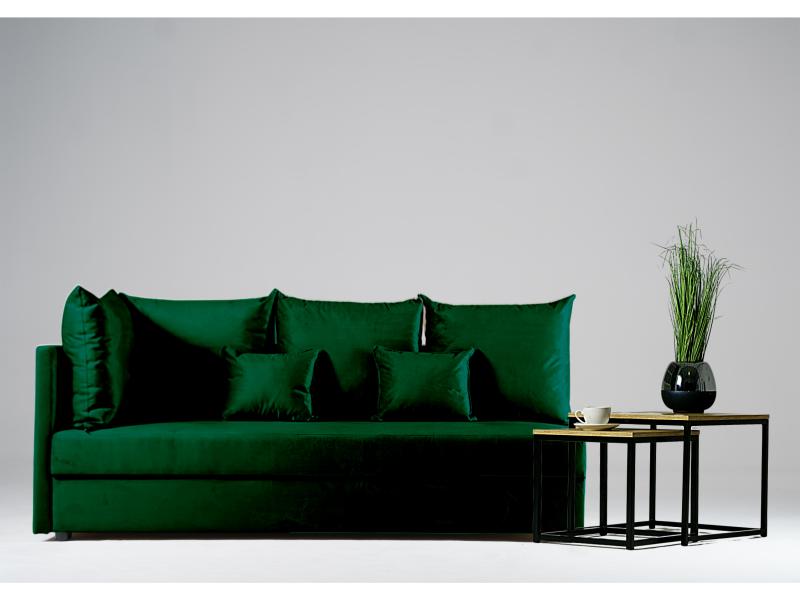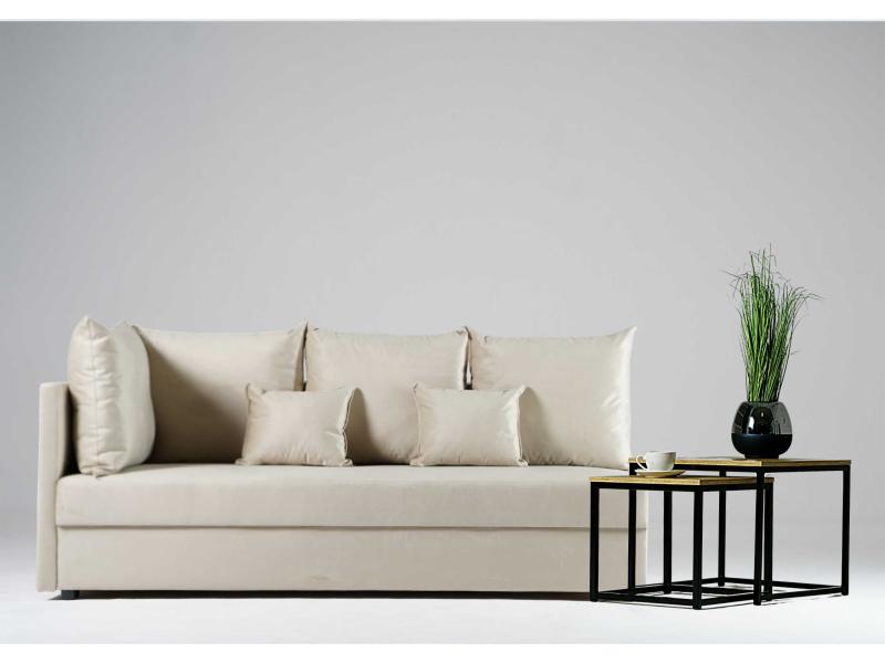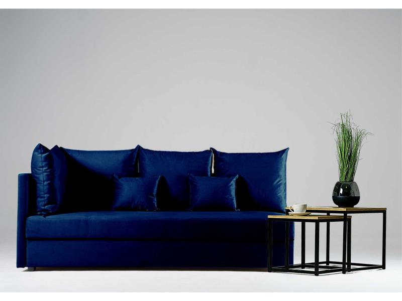 - Sofa z funkcją spania, który idealnie nada się zarówno do małego pokoju w bloku jak i w większych pomieszczeniach.