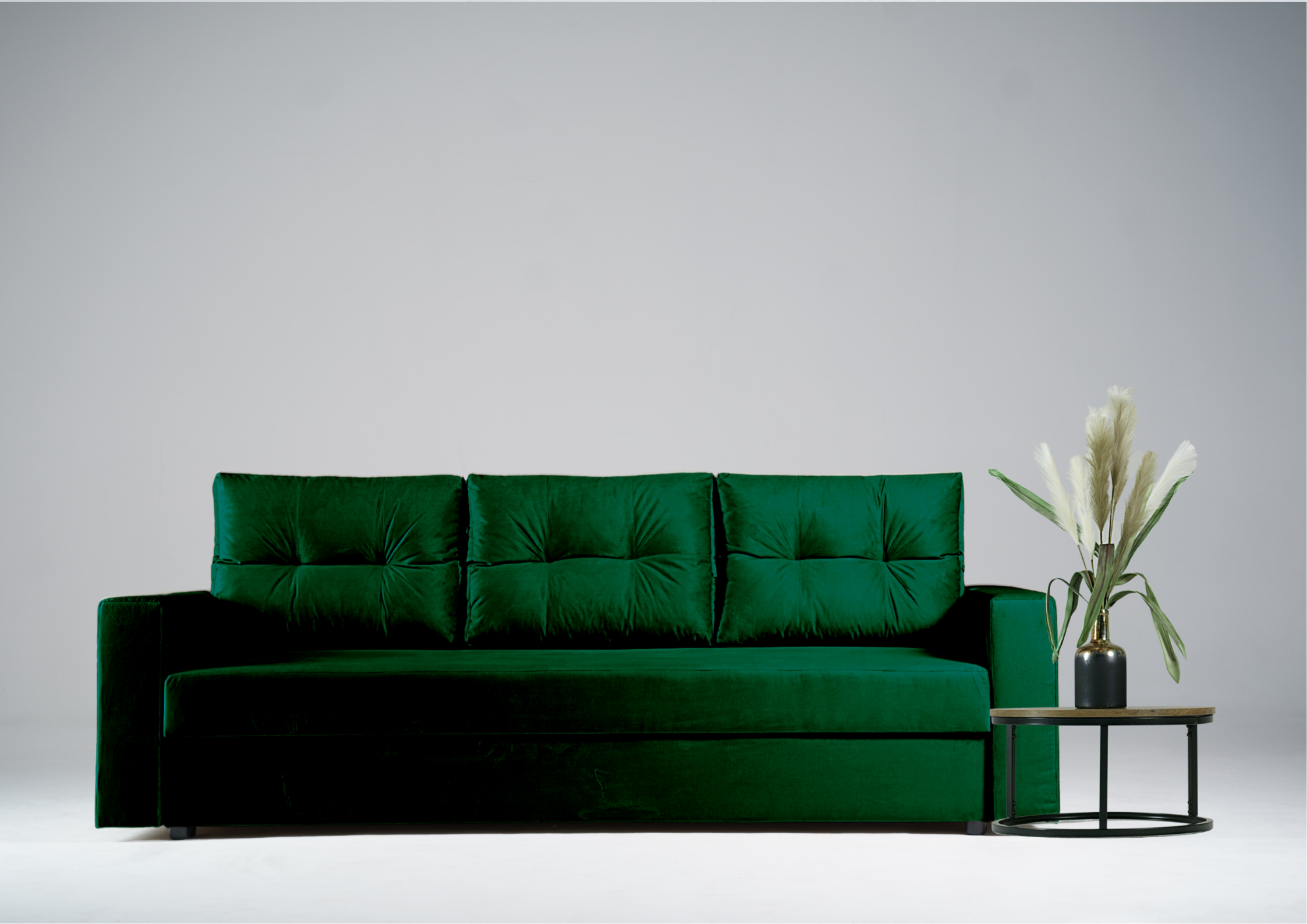 Dane techniczne: Sofa Rozkładana Trzyosobowa BORA Zielona z Funkcją Spania do Salonu