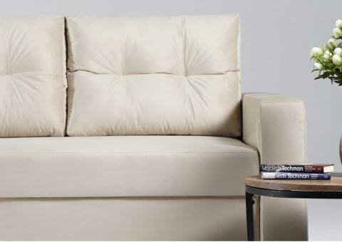 Mała i funkcjonalna sofa bono to praktyczny mebel z dużą skrzynią na pościel dostępną pod całą powierzchnią siedzenia. Klasyczny wygląd kanapy świetnie wpasuje się do większości wnętrz, a jego małe wymiary sprawią, że nie zagraci ona przestrzeni. Idealny mebel do bloków, czy mniejszych pokoi w domach, mieszkaniach czy szeregowcach.