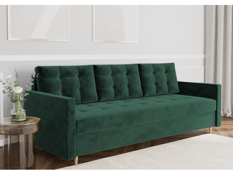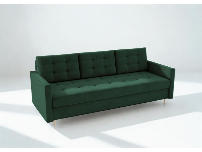Sofa Rozkładana VIDO Zielona Pikowana z Funkcją Spania Kanapa do Salonu