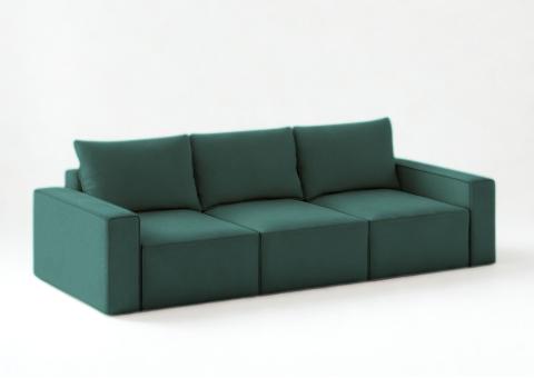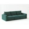 Modułowa sofa rozkładana SENS z pięknymi przeszyciami w stylu angielskim. Jest to szew zewnętrzny zastosowany na krawędziach mebla. Kanapa posiada 3 pojemniki na pościel. Po jednym pod każdym siedziskiem. Moduły możne rozłożyć niezależnie od innych. Po rozłożeniu wszystkich trzech uzyskamy dużą powierzchnię spania o wymiarach 240x160cm. Głębokość siedziska to 100cm. W zestawie znajdą Państwo 3 duże poduszki oparciowe.
