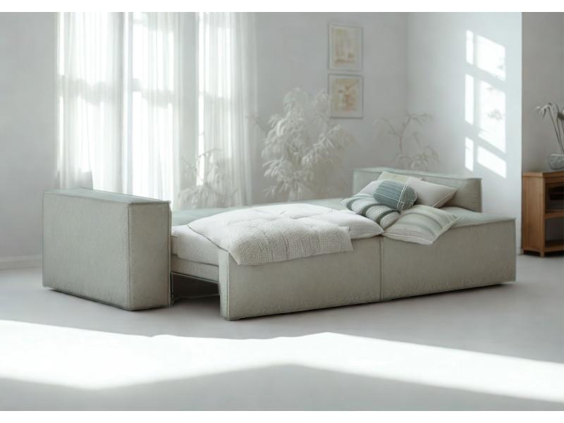 - Sofa z funkcją spania, który idealnie nada się zarówno do małego pokoju w bloku jak i w większych pomieszczeniach.