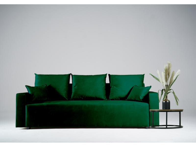 Sofa Rozkładana Trzyosobowa LILA Zielona Mała z Funkcją Spania Do Salonu