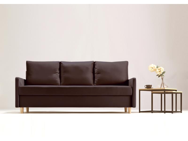 - Sofa z funkcją spania, który idealnie nada się zarówno do małego pokoju w bloku jak i w większych pomieszczeniach.