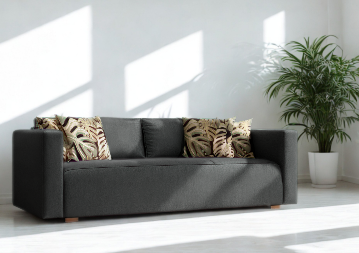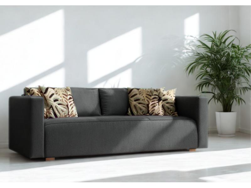 - Sofa z funkcją spania, który idealnie nada się zarówno do małego pokoju w bloku jak i w większych pomieszczeniach.