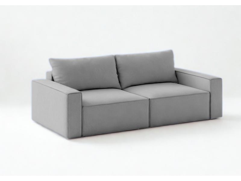 Stylowa Sofa Sens 2 Loft - Szara sofa industrialna z przeszyciami zewnętrznymi. Funkcja spania 160x200cm, dwa pojemniki na pościel, wykonana z weluru, w zestawie dwie poduszki.