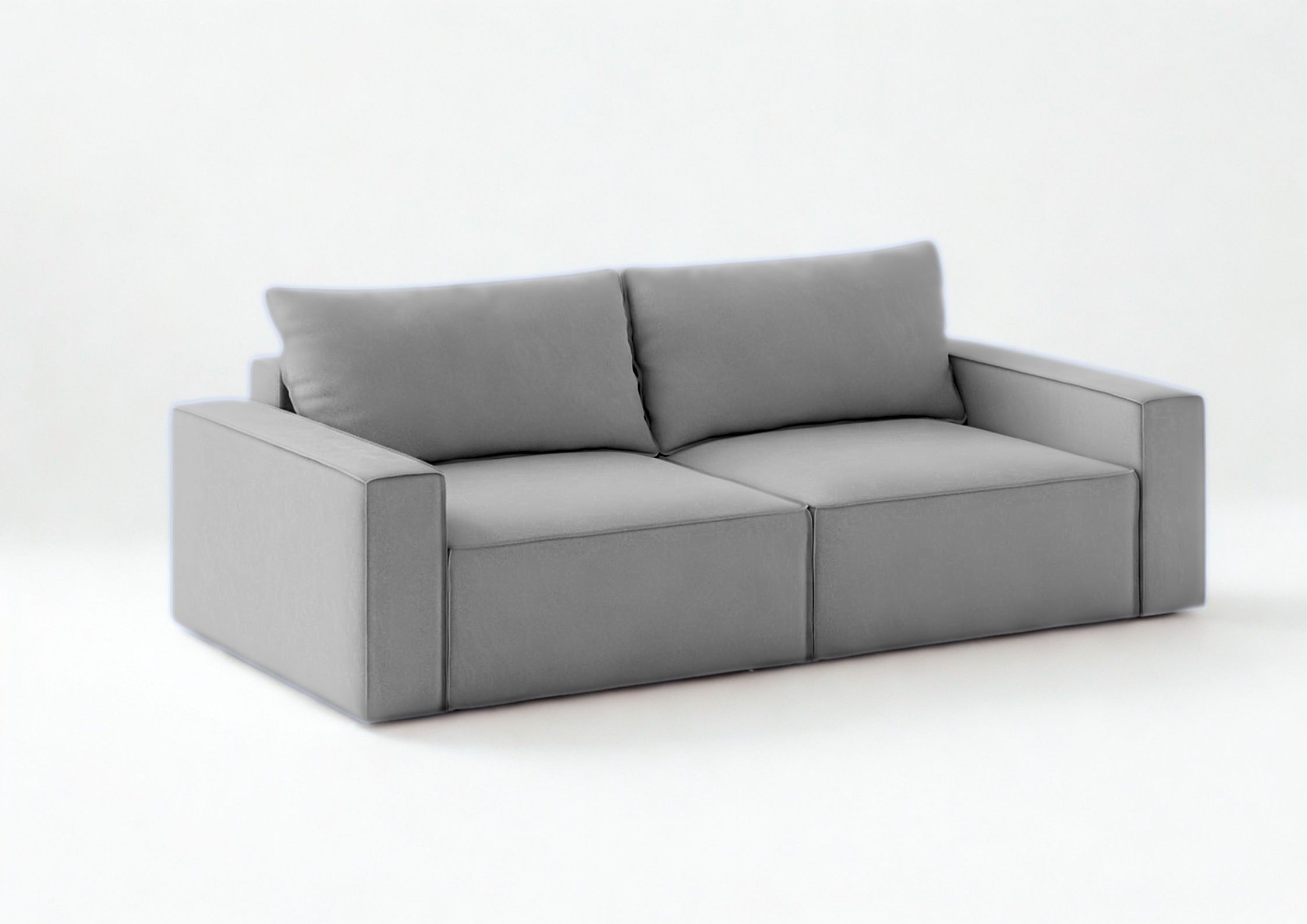 Szara Stylowa Sofa Sens 2 Industrialna z Dwoma Poduszkami i Funkcją Spania