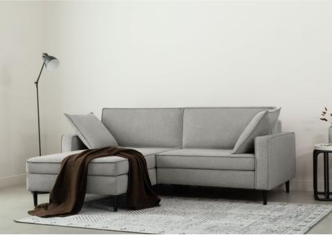 Mały skandynawski narożnik Szary z funkcją spania OSLO LEWY