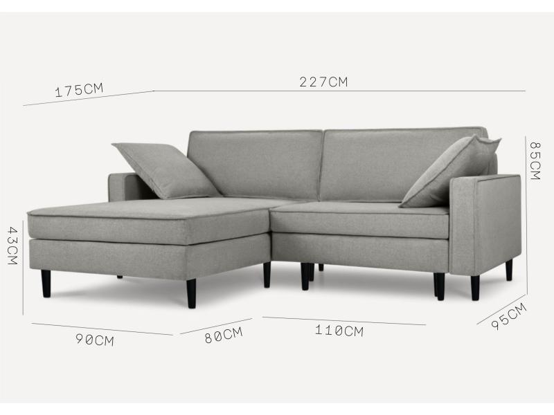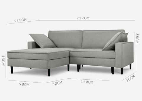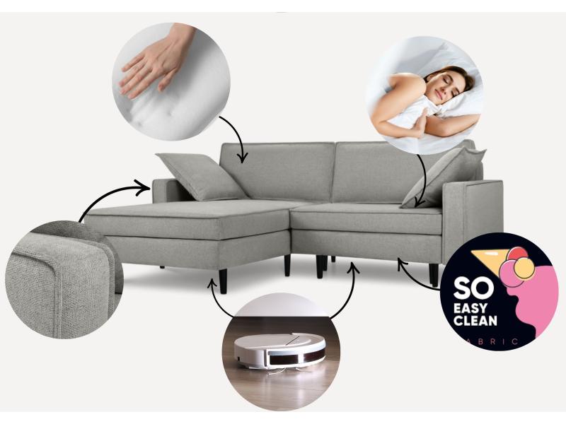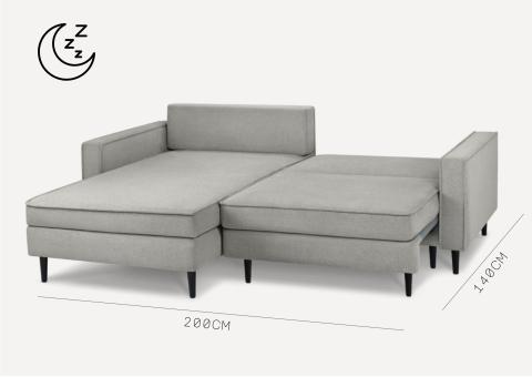 Dane techniczne: Mały skandynawski narożnik Szary z funkcją spania OSLO LEWY